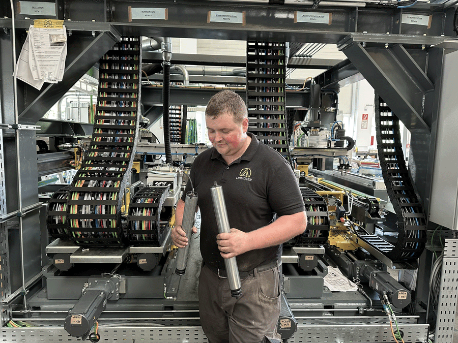 The CERBERUS MAX produces transport rollers in batch size 1 with a cycle time of just 5 seconds 100% automatic quality inspection of all rollers.